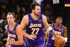 赛后,湖人官方发布赢球海报,封面人物为东契奇和肯纳德。