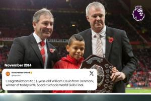 2014年,11岁的奥苏拉曾参加曼联足校举办的世界技巧大赛并夺得冠军,今天他为纽卡绝杀曼联。