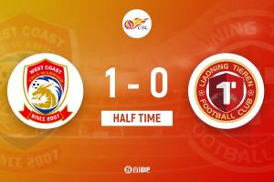 半场结束,青岛西海岸暂1-0辽宁铁人。